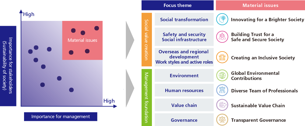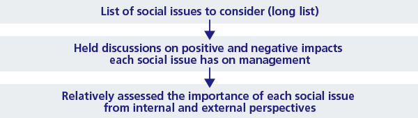 Assessment of importance of social issues from long-term perspective and mapping of materiality matrix