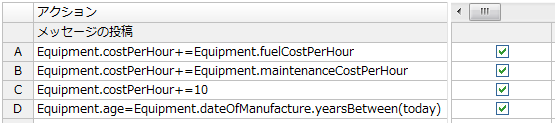 この書き方以外にも、Resourceの種類ごとにルールシートを分けるという方法もあります。この場合、新しい種類のリソースを追加する場合はいつでも、時間単価を計算するルールシートの追加が必要です。追加費用は、Equipmentという新しい種類のエンティティを作ったことで、Equipmentルールシートで自動的に処理されます。