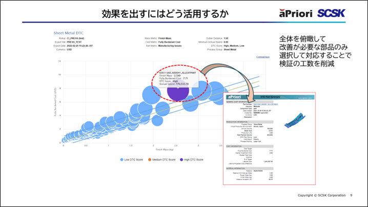 ・優先度の高い部品に絞ってaPrioriで詳細検討を行い、関係者と議論。競争力のある製品づくりに時間を割く