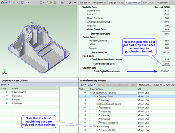 このような能力を備えることで、設計エンジニアやコストエンジニアは、設計段階でコスト効率を高めるための部品修正案を導き出せるようになります。aPrioriの製造インサイト・プラットフォームは、組織がこの目的を達成するためのソリューションを提供します。