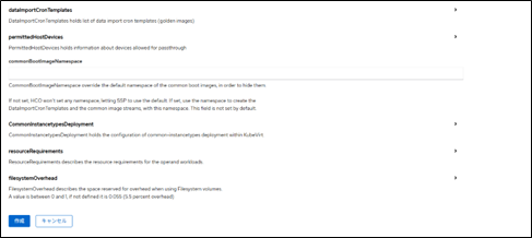 デフォルトストレージクラスとは複数のストレージクラスが存在する場合にデフォルトで使用されるストレージクラスです。 今回の環境ではストレージクラスは1つですが、設定しておきます。また設定すると、仮想マシンを効率的に作成できるブートソースを自動的に更新します。