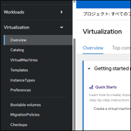 WEBコンソールのメニューに Virtualization の項目が追加されます。