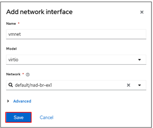[Add network interface] ボタンからVM専用ネットワークに接続するためのNICを追加します。