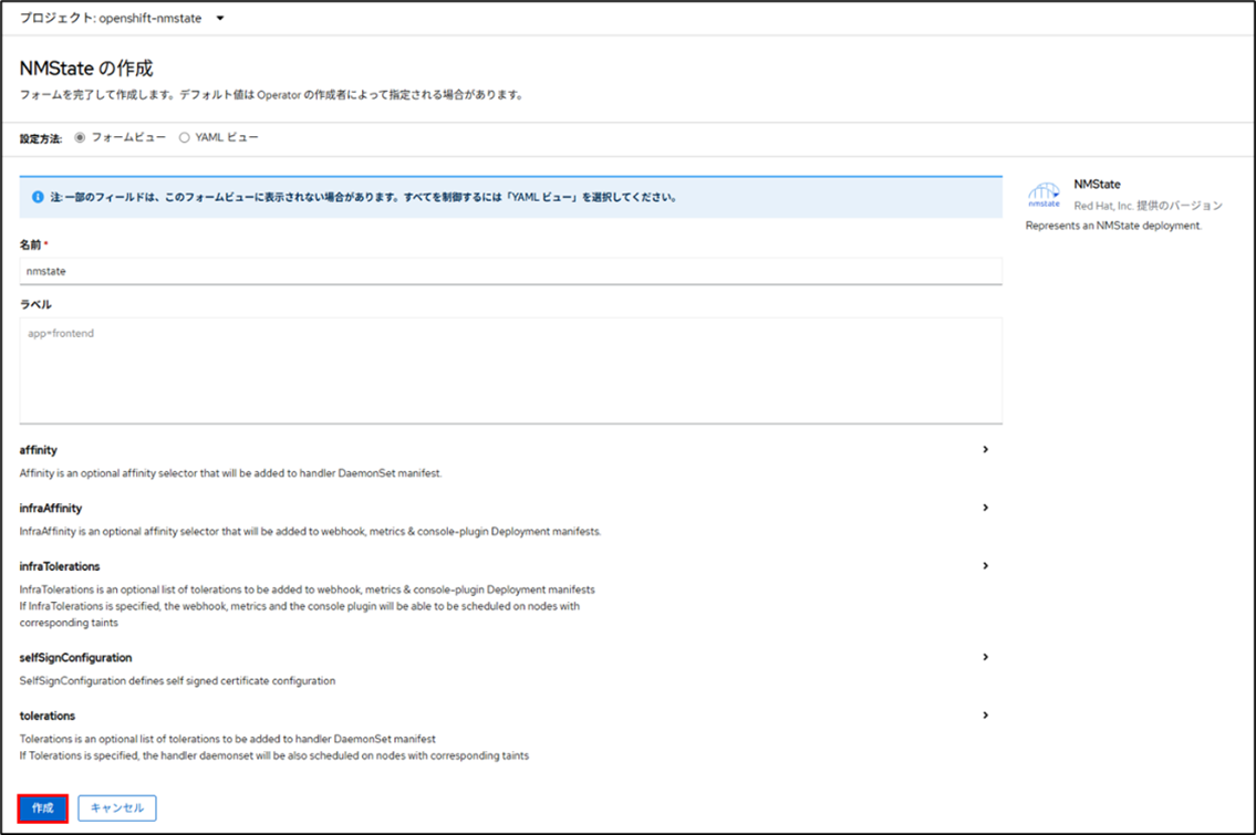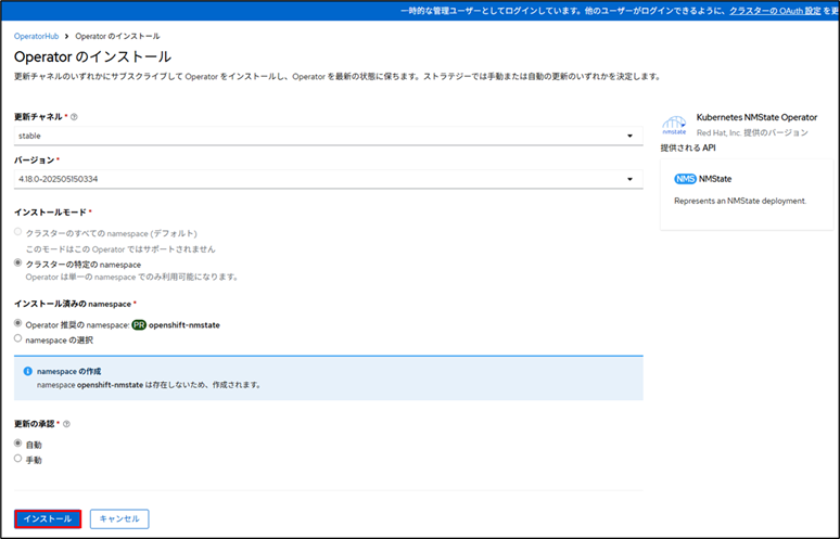 ■インストール済みのnamespace:Operator推奨のnamespace:openshift-nmstate