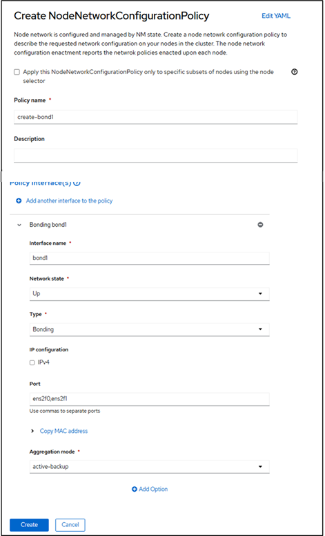 2.NodeNetworkConfigurationPolicy の画面で[Create]をクリックします。