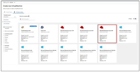 4. VirtualMachineのテンプレート画面で、RHEL9を選択します。