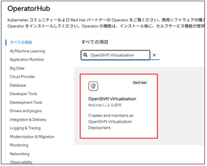 2.検索バーに「Virtualization」と入力し、「OpenShift Virtualization」を選択します。