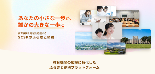 「SCSKのふるさと納税」は「教育機関を応援する」という目的に共感した人に向けて開発された新たなふるさと納税サービスです。目的型ふるさと納税と呼ばれるもので、返礼品がない代わりに、寄付金の使い道を自分で選ぶことができます。