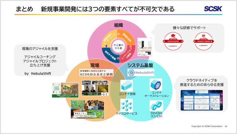 新規事業成功のポイントは、良質なトレーニングとチーム成長、そして「応援心」に根ざしたサービス設計にあります。「SCSKのふるさと納税」など実践知を持ったSCSKのNebulaShiftがアジャイル支援によって新規事業を成功に導いていきます。