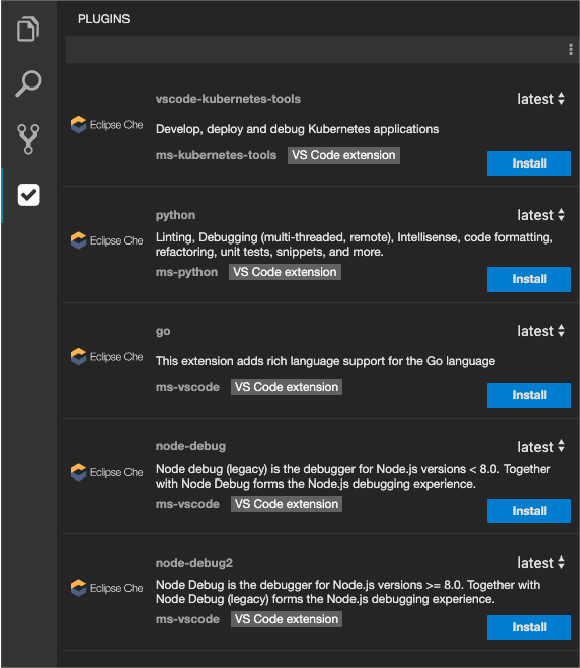 VSCodeで利用可能なRed Hat extensionsは全てCodeReady Workspaces 2使用可