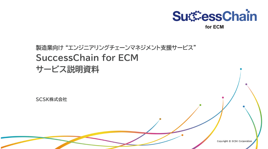 SCSKが提供する製造業向けサービス「SuccessChain for ECM」は、設計から製造までのプロセスデータと技術情報の統合管理を可能にする基盤導入、各領域ごとの業務テンプレートの導入/運用の伴走支援、AIやデジタルツインの活用を通じてQCDの改善を実現するサービスです。