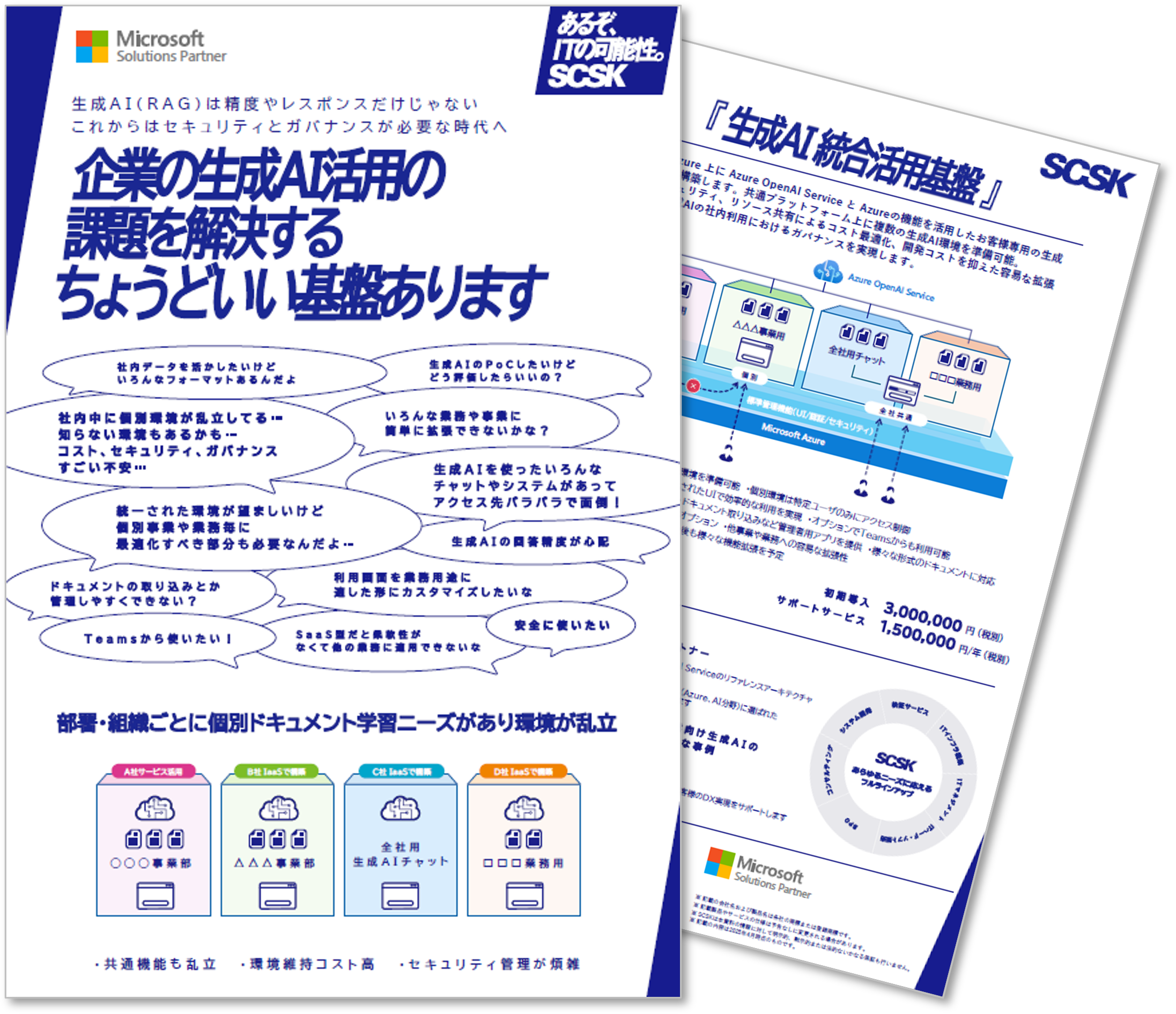 SCSKのMicrosoft Azure ビジネス全般のサービス紹介資料です。 導入事例を交えた分かりやすい資料となっていますので、ぜひご覧ください。
