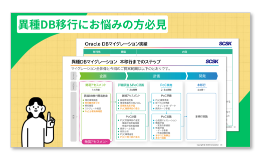 OracleからPostgreSQLへの移行を検討されている方、その他異種データベース移行を検討されている方は、ぜひ一度SCSKにご相談ください。